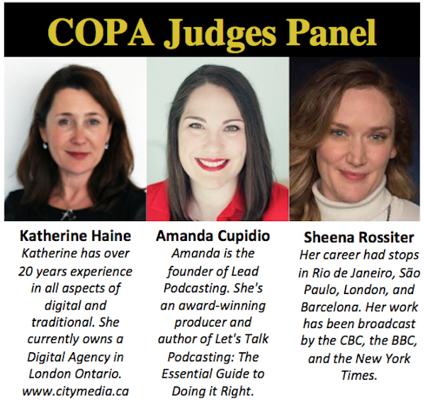 The COPAs’s mission is to help move the needle foward for Canadian content creators and this year's COPAs will feature three COPA Judges as speakers to share their wisdom with the industry. The 2021 COPA Awards Party is a two day virtual event on a Tropical Island resort on Feb 9 and 10. The program includes webinars, on-demand video and the 2021 Awards party to see who is the Best in Canada in 2021. The cost to attend is $30 per person.