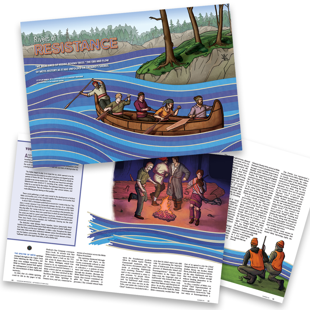 The issue also explores the history of MNO’s hunt for justice, and profiles Ontario’s historic Métis communities, including the voices of several citizens.