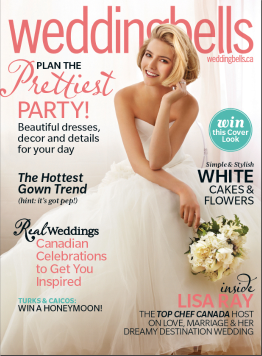 The newest issue features Lisa Ray, Top Chef Canada host, on love, marriage and her upcoming destination wedding; Real Weddings – inspirational celebrations from couples across Canada; From peplum to colour: the hottest new trends for bridal gowns; and Cakes and flowers in an all white colour palette.